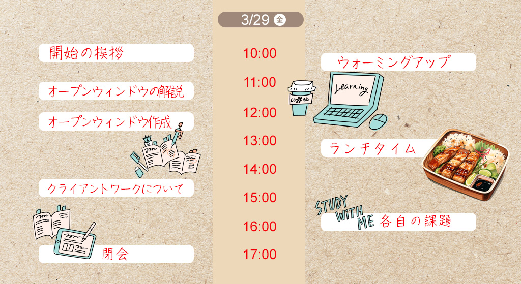 その他 | 当日は会場内で、皆でランチをします。飲み物も1本付属します。 |