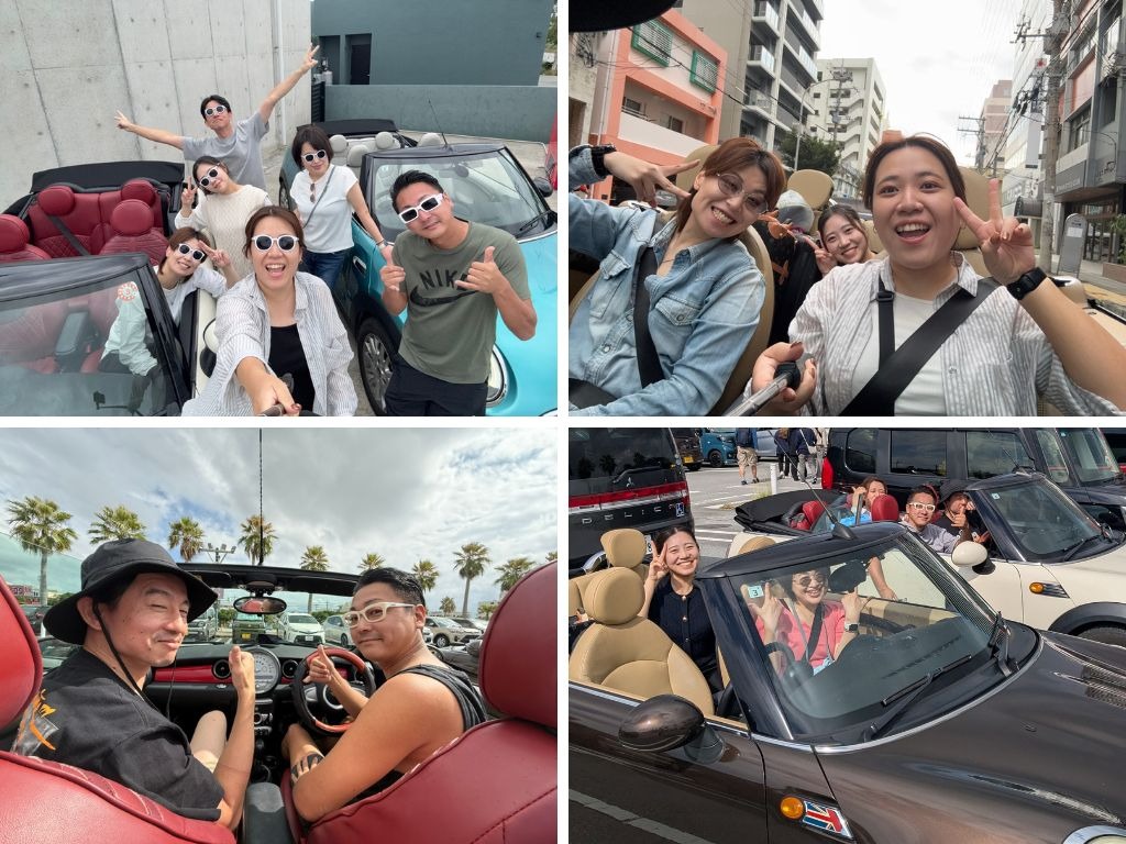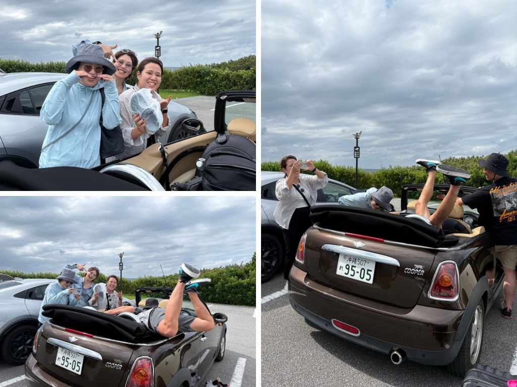 沖縄の風を感じるため、オープンカーでドライブへ出発!