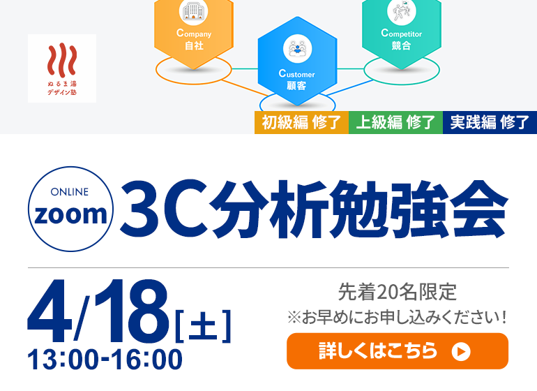 日程 2026年1月17日(土) 時間 20:00~22:00 場所 Zoom開催 学習内容 カリキュラム以外のデザイン添削 定員 先着8名 対象 ぬるま湯デザイン塾の生徒参加者にPSDデータを共有可能な方 持ち物 ネッ