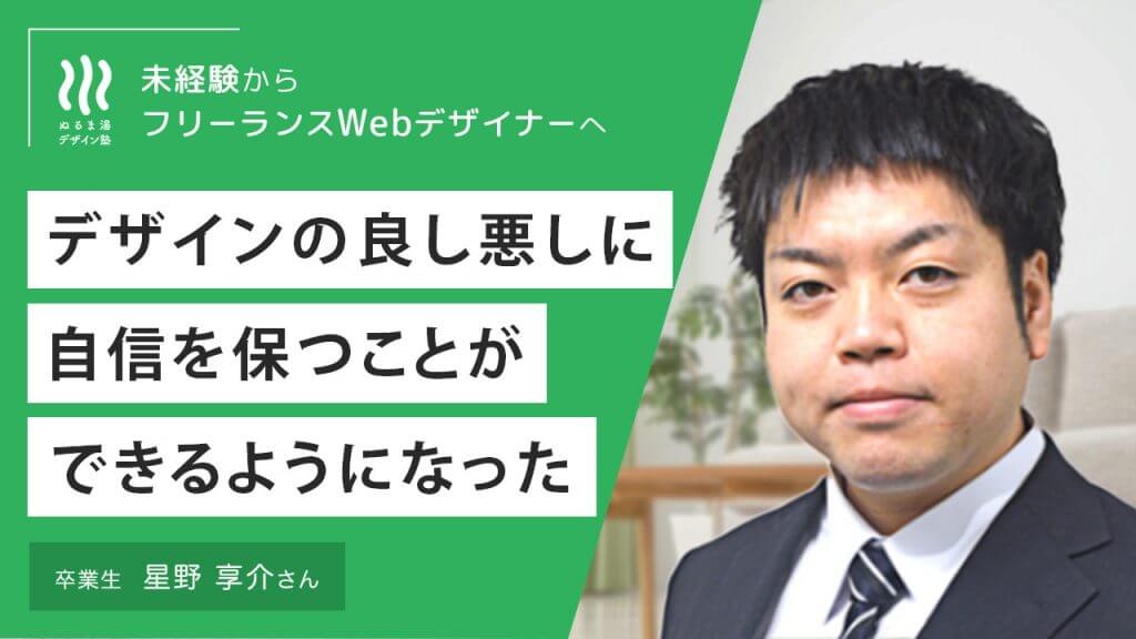 自己紹介をお願いします。 星野享介です。今フリーランスしてwebデザイナーをしています。もともとは建設業で5年間働いていたので、webデザインに関する知識はゼロだったんですが、 ちょうど転職する時に前の会社と、このデザイ