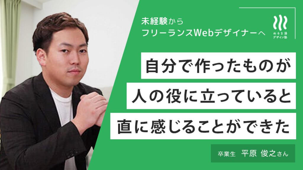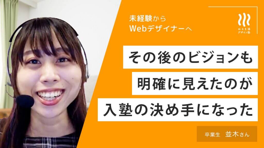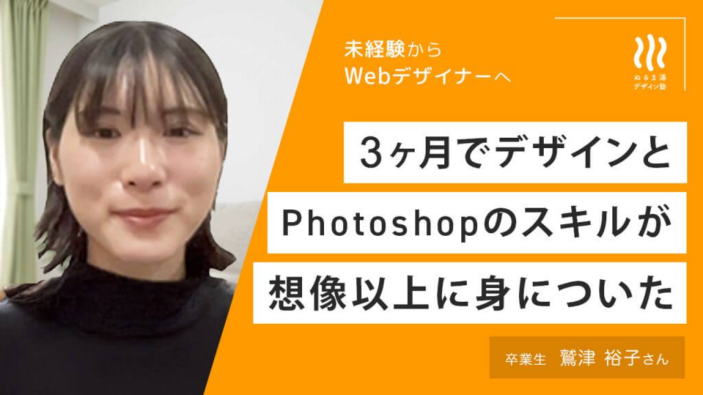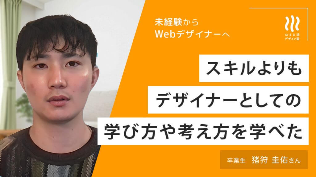 ぬるま湯塾を受講したきっかけは? YouTube広告でたまたま見かけました。そのときは、デザイナーになろうという感じではなかったのですが、デザインに興味がありました。前職でwebメディアの運営をしていてサムネイルとかを独