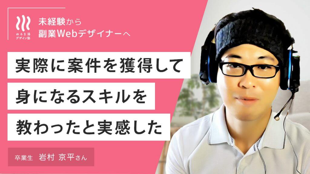 自己紹介をお願いします。 岩村京平と申します。 今はサービス業をしつつ デザインを副業にしています。 入塾時のWEBデザイン経験やPCスキルについてのレベルは? デザインは他のスクールに通った事もなくて未経験でしたね。
