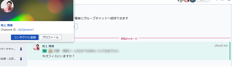 Chatwork上で「尾上さんを装った偽アカウント」から申請が届く事例が発生しています。
