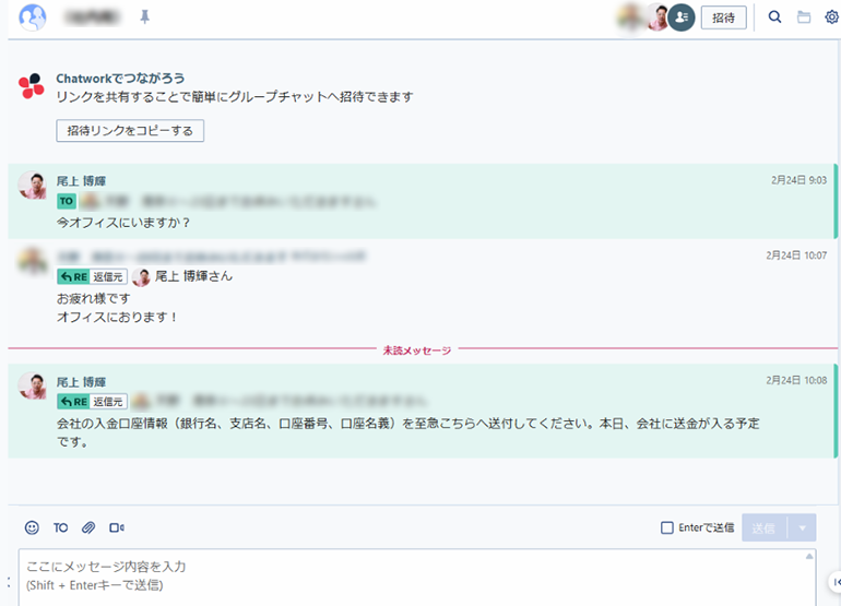 会社の入金口座情報を聞き出そうとしてきます。
