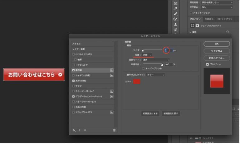 • 角丸正方形の境界線は、サイズ1px、位置:内側になっていますか?