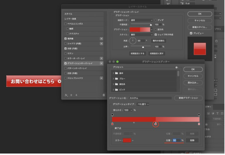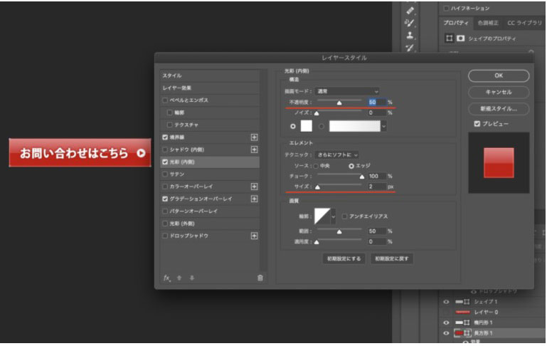 • 角丸正方形の光彩は、不透明度50%、サイズ:2pxになっていますか?