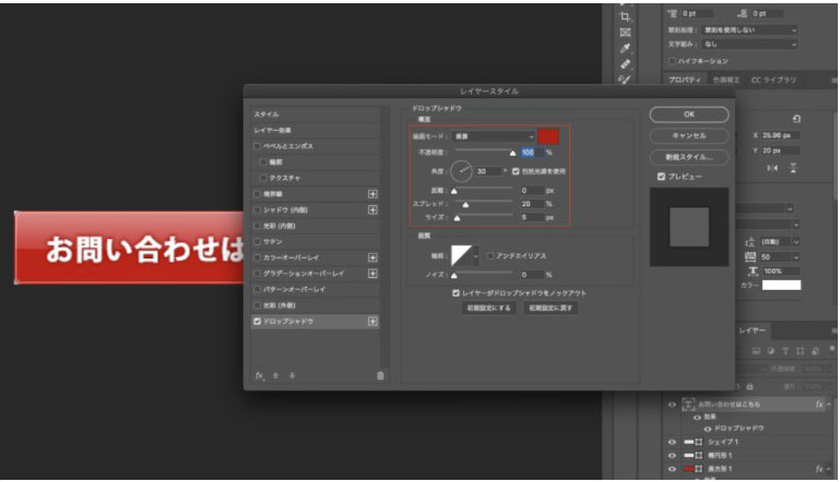 • 文字のドロップシャドウは、角度:30% 距離:0px スプレッド:10〜20% サイズ:5px になっていますか?