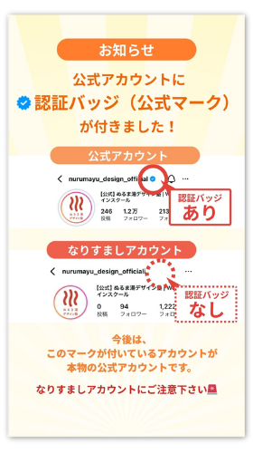 この度、ぬるま湯デザイン塾公式Instagramアカウント「https://www.instagram.com/nurumayu_design_official/」を装った偽アカウントの存在が確認されました。