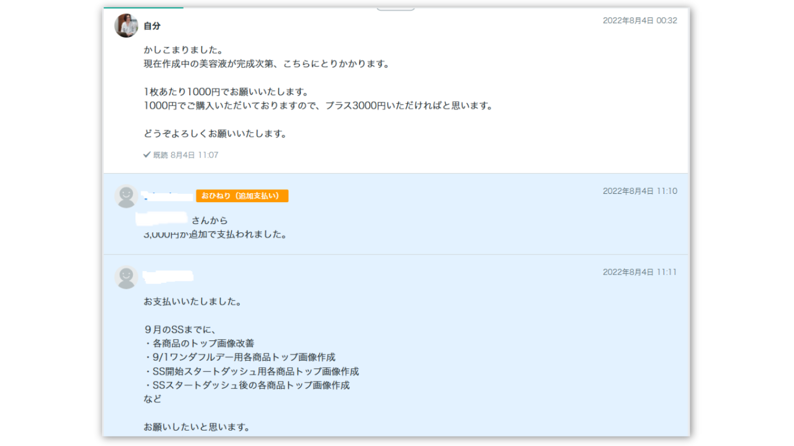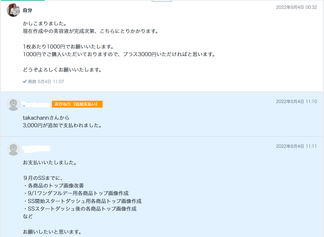 そんな感じでクライアントにフルコミットしていたので、1回の依頼でも複数回、追加購入(おひねり)していただきました。