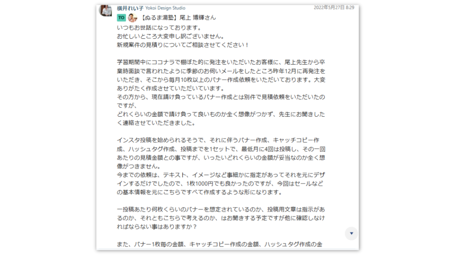「あれからいかがですか?」とご機嫌伺いのメールを送ったらそこから毎月10枚以上のバナー作成依頼が届くようになりました。