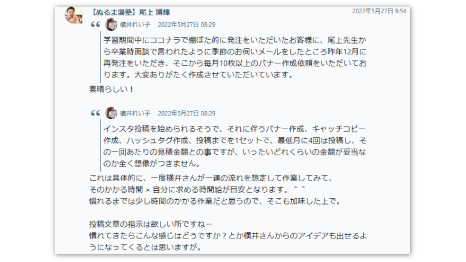 ※2021年当時のため現在は塾生コミュニティのスペチャかプラチナランカー専用のチャットでのみ尾上塾長にご相談可能です