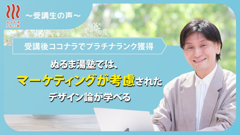 はい、3点あります。 一つ目は、マーケティング目線で売れるデザインを学べる点 二つ目は、困ったことは何でも聞ける環境が整っている点 最後に、卒業後も繋がり続けることができる点がとても良いと思います。 自分もまだまだ成長過程ですが、マーケティング思考のデザインを作り、その後反応や結果まで求めるデザイナーは周りにいないため、今ではものすごい財産となりました。 それを現役経営者の尾上先生から学べるというのは本当にプライスレスだと感じます。 1人で制作していたときは孤独だったし、自分のスキル以上の案件を受けることをためらっていましたが、「とりあえず受けてから相談する!」マインドでいけるので強気で案件獲得ができるようになりました笑